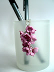 Сирень - цветы из полимерной глины, бисер, пины, цепочка и кольца под серебро.