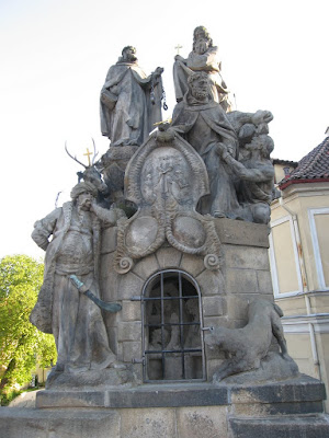 Последним пунктом нашего маршрута был огромный и украшенный мрачноватыми статуями Карлов мост.