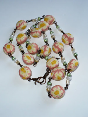 В итоге украшения получились комбинированные. Цветок - пластика, и оформление из бисера.
