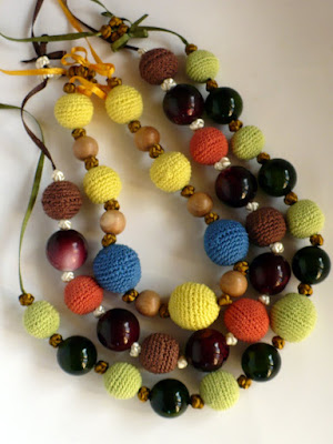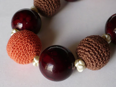 Вязанные бусины очень напоминают шарики шоколадного и клубничного мороженного.