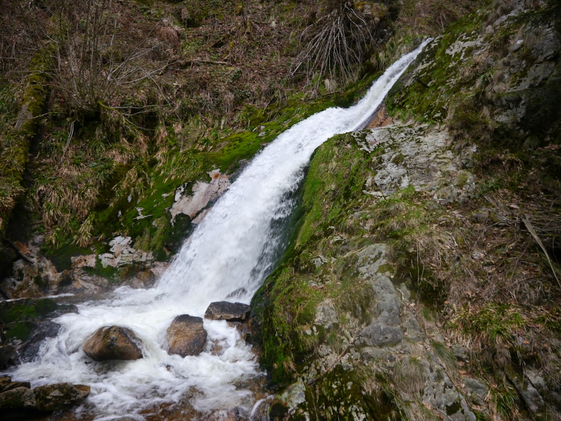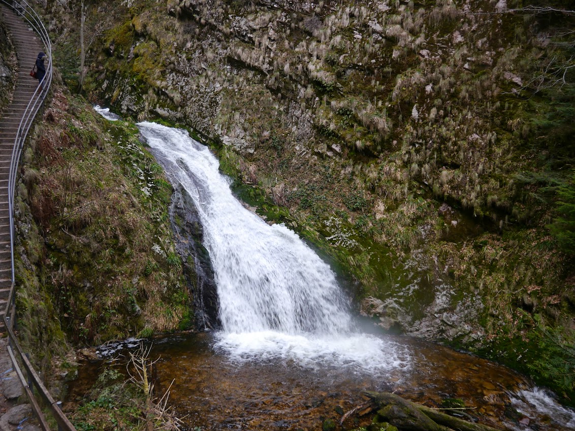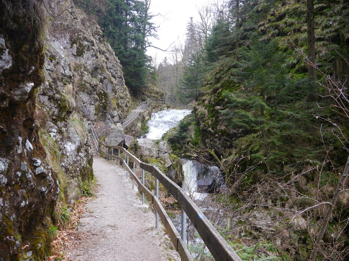 Внизу возле стоянки устроен парадный вход на тропу к водопадам. Кстати, тропу на перевал, по которой мы пришли, мне кажется, от туда найти сложно. Она не такая уж заметная сама по себе, а на контрасте, можно сказать, что тайный ход. Часть тропы к водопадам была закрыта из-за возможности схода лавин, но не на столько, что туда было нельзя попасть. На свой страх и риск, мы всё-таки решили идти (не мы одни, там были добропорядочный бюргеры, пенсионеры и дети).