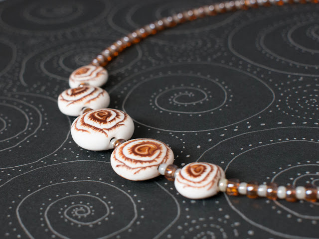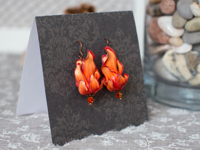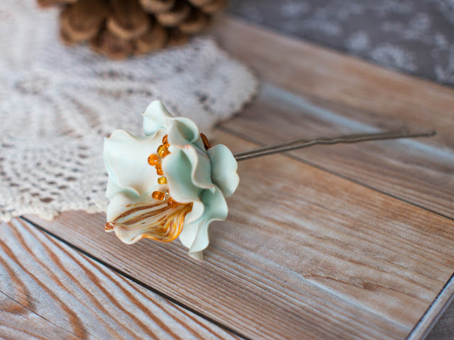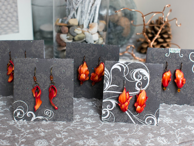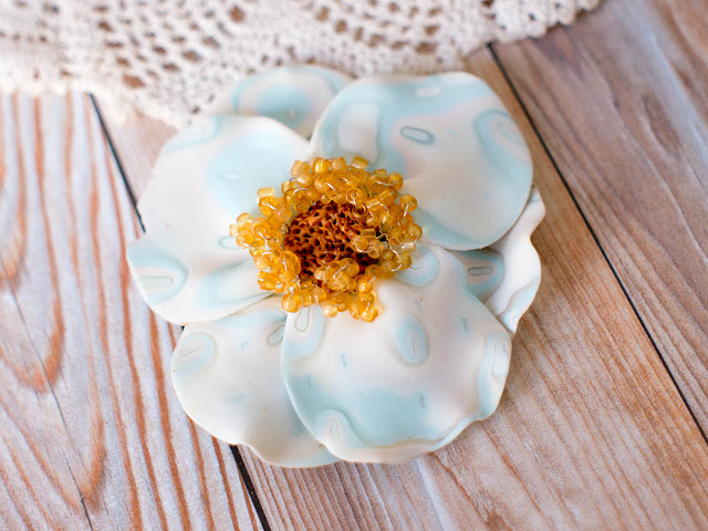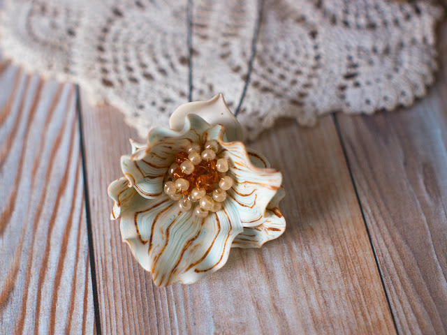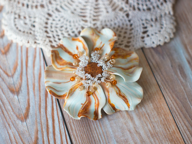 Элементов из полмерной глины в этом случае мало - только центральный "камушек" и колпачки. Солнышки на них - рисунок Pearl Ex.